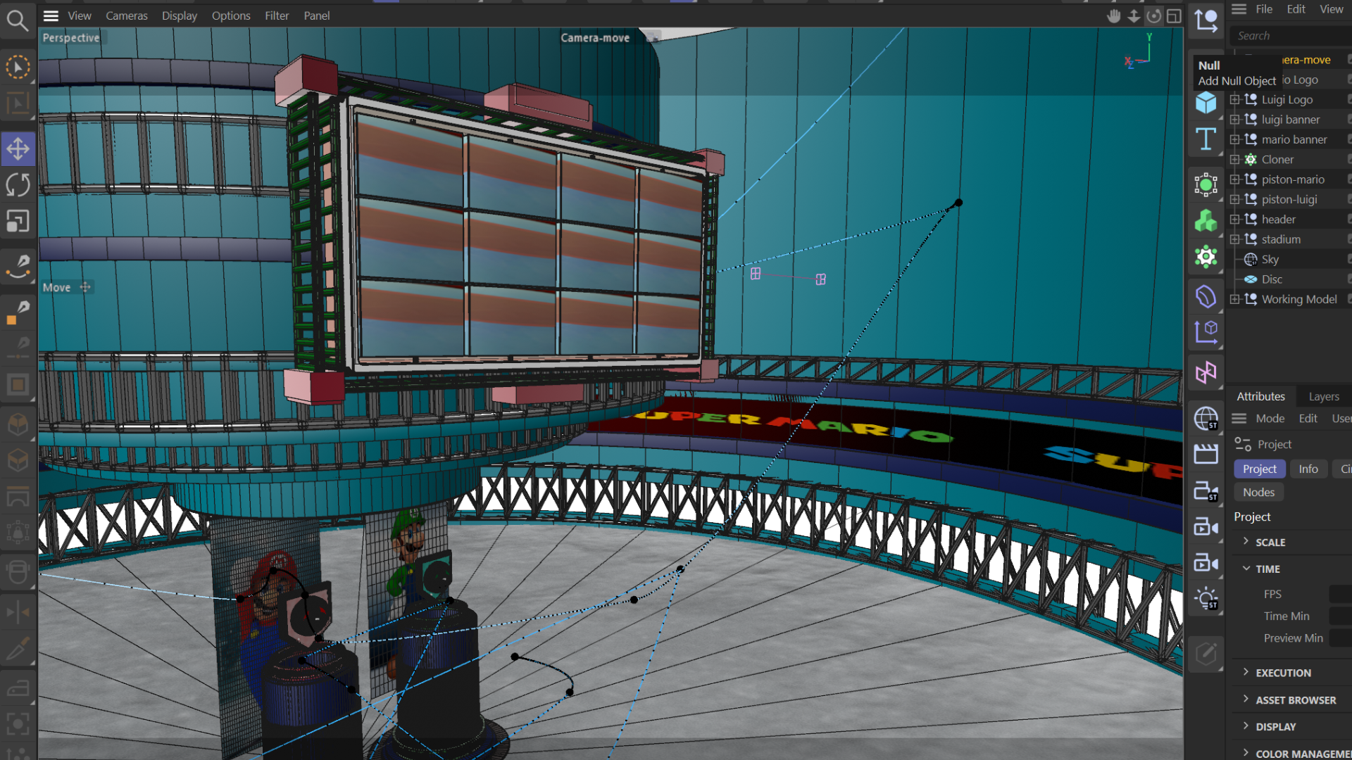 I prepared all the necessary assets and then used Cinema 4D to build the entire Sportnet from scratch, taking it from zero to 100%. After setting the camera in Cinema 4D to record the 4D video, I rendered the file and transferred it to After Effects to add animations and effects, enhancing the overall quality of the video.